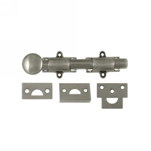 These surface bolts are designed to be mounted in the inside of a door to offer extra security. They are available in an array of fine finishes and an assortment of matching strikes. Rod Size: 6" x .625"